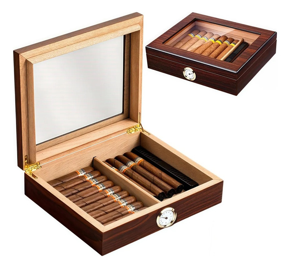 O umidificador é um item essencial para todos os amantes de charutos. O umidificador pode garantir as melhores condições de armazenamento sob constante umidade e temperatura.Material adequado para garantir a retenção da umidade e proporcionar o melhor proveito na utilização de seus charutos.