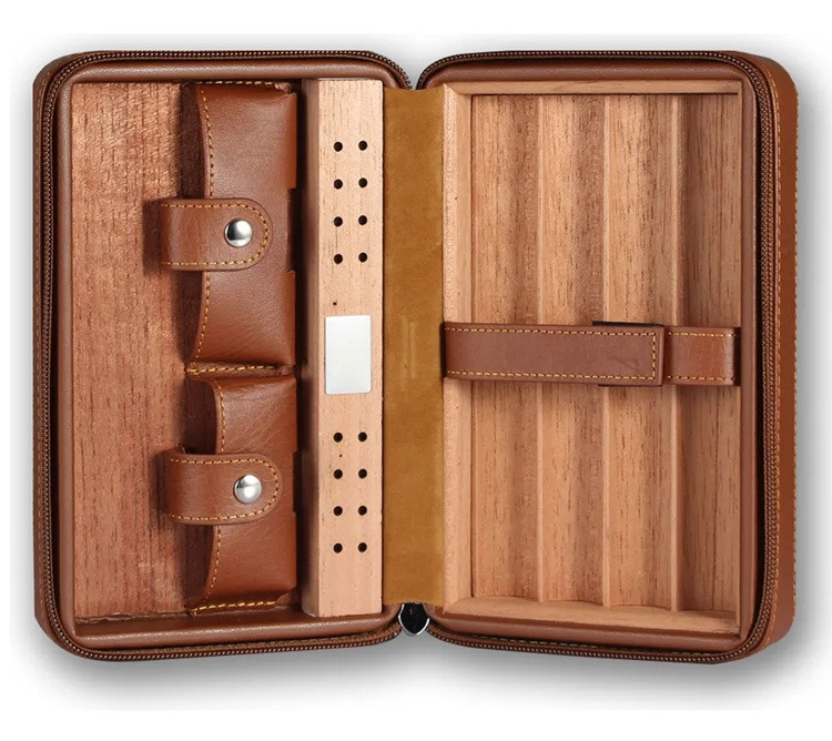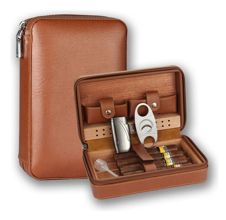 Este umidor de charuto portátil premium é excelente para viagens. Não só fornece um local seguro para guardar seus charutos, como também os mantém frescos. Possui compartimentos onde você pode guardar seus itens favoritos, cortadores e isqueiros de charutos. Portanto, adequado para uso doméstico ou viagem. O umidor pode caber em uma maleta, porta-luvas ou em uma bolsa, para mantê-lo ao seu alcance quando você precisar.